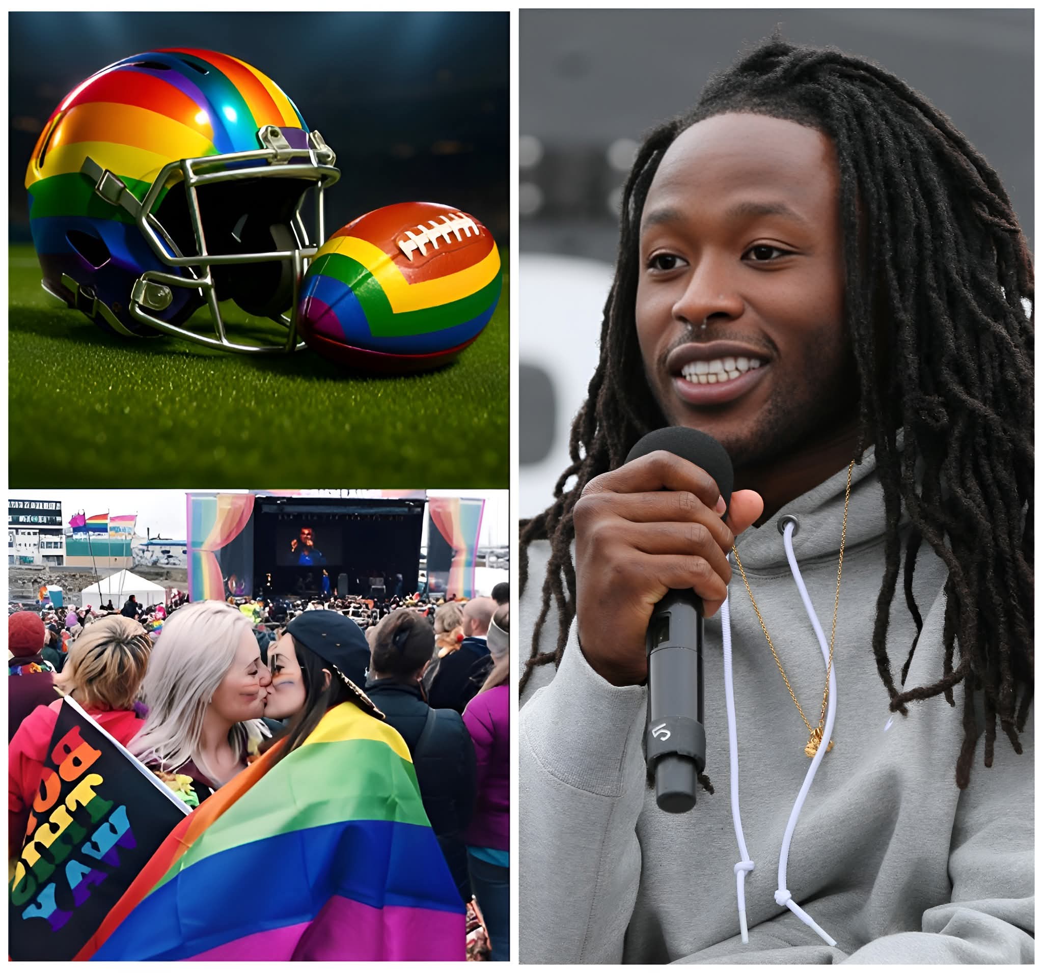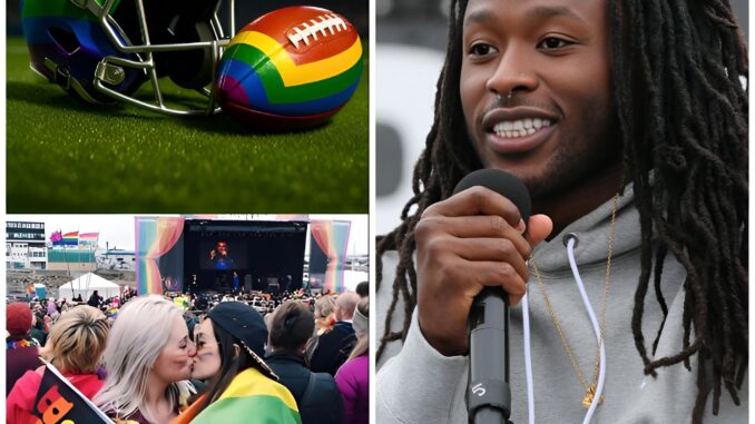 A major controversy has erupted around New Orleans Saints star running back Alvin Kamara after reports surfaced that he has publicly refused to wear a helmet or use a football displaying an L.G.B.T. rainbow symbol for the remainder of the season. According to multiple sources familiar with the situation, Kamara communicated his position directly to team officials, later reinforcing it with a statement that quickly ignited intense debate across the sports world. In his remarks, Kamara emphasized that his objection was rooted in his belief that football should remain centered on competition and performance, saying the sport “should focus on the game — on competition and winning,” and not become what he described as a platform for political or ideological messaging.